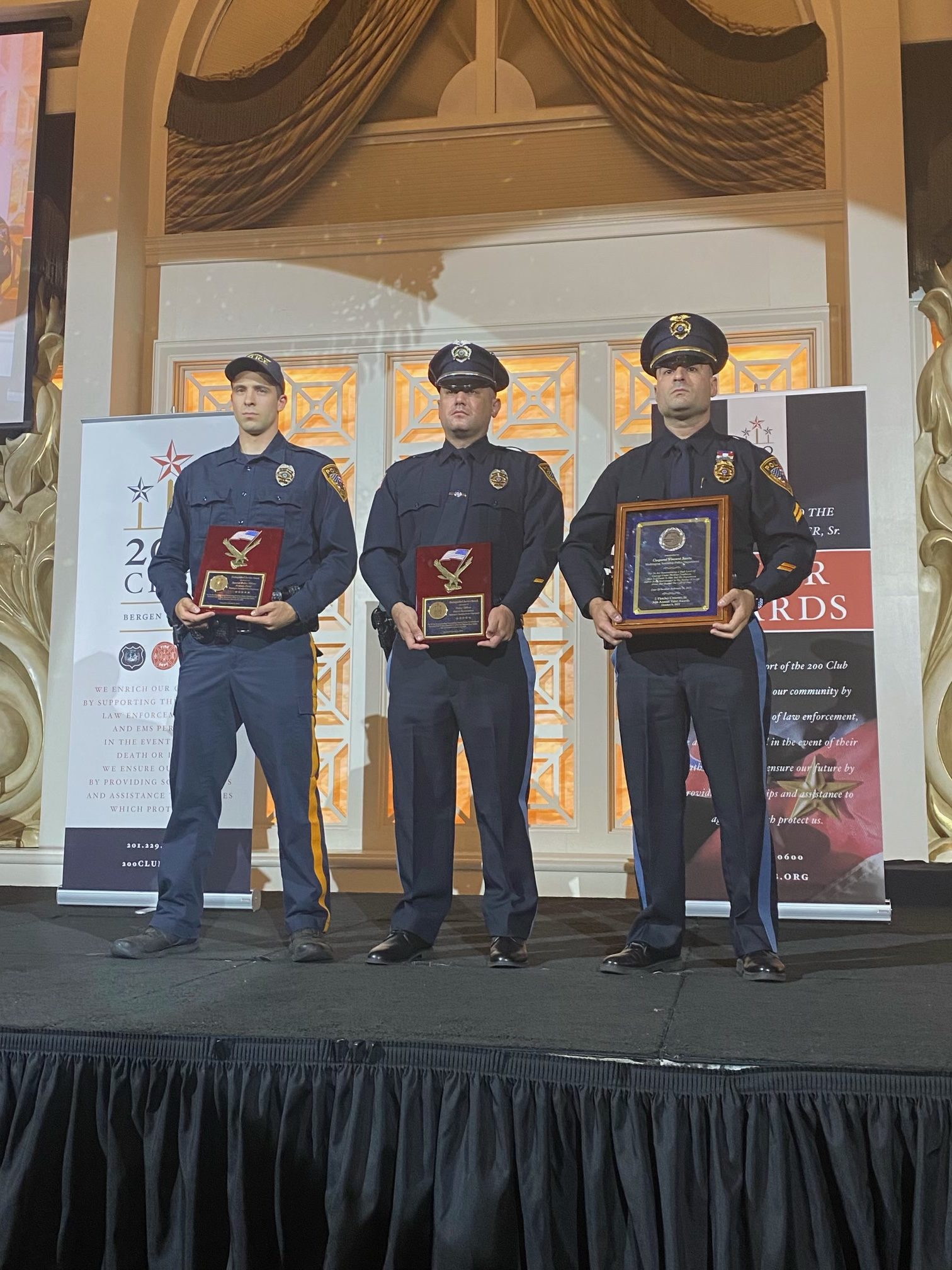 Washington Township Police would like to Congratulate Cpl Vincent Santa, PO David Ferrazzano and SO Antonio Parisi on being recognized by the 200 Club last night. This ceremony was held at the Venetian honoring First Responders. The 200 Club of Bergen County Valor Awards Ceremony is our opportunity to recognize the men and women that have given of themselves above and beyond the call of duty in the service of Law Enforcement, Fire or Emergency Medical Services.